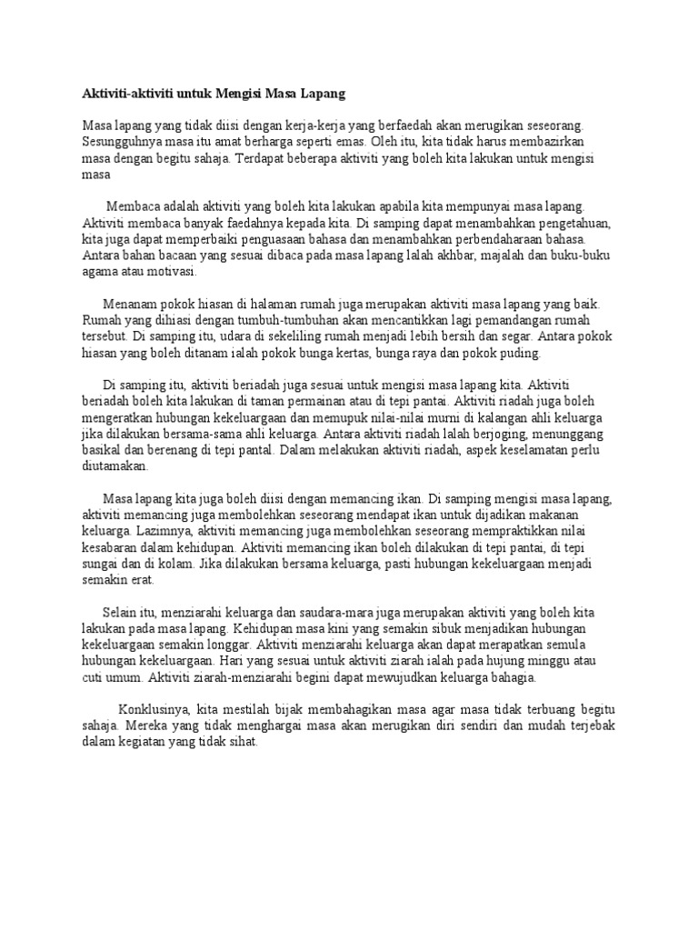 Karangan Cara Mengisi Masa Lapang Spm from zaskya-adyawebapp. Mana-mana yang sesuai bolehlah engkau orang ikut. Bagi yang memerlukan idea baru untuk mengisi masa lapang ni admin kongsikan 10 peraduan menarik yang boleh disertai dengan hanya duduk dirumah.